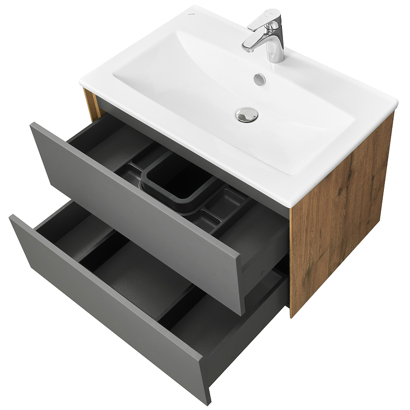Закажите товар "Тумба под раковину Aquaton Сохо 75 1A258101AJA00 подвесная Дуб веллингтон Графит софт"