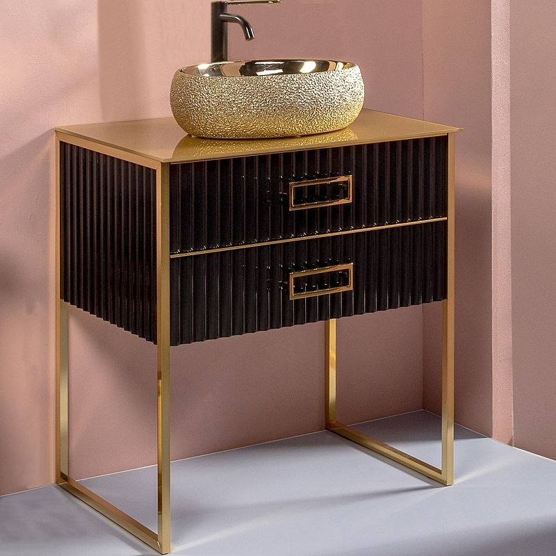 Закажите товар "Тумба под раковину Boheme Armadi Art Monaco 80 866-080-BG Черный глянец Золото"
