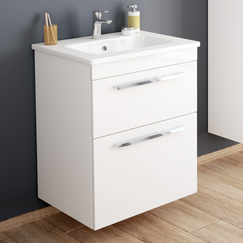 Закажите товар "Тумба под раковину Diborg Leonie 60 77.1223 подвесная Белый глянец"