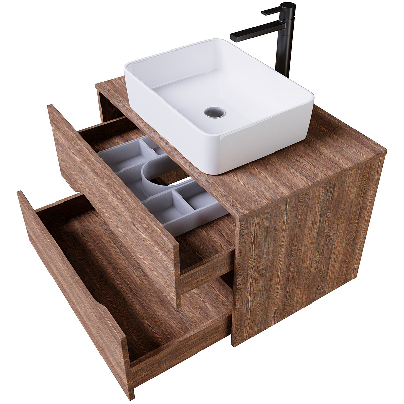 Закажите товар "Тумба под раковину Grossman Лайф 80 108015 подвесная Винтажное дерево темное Графит"
