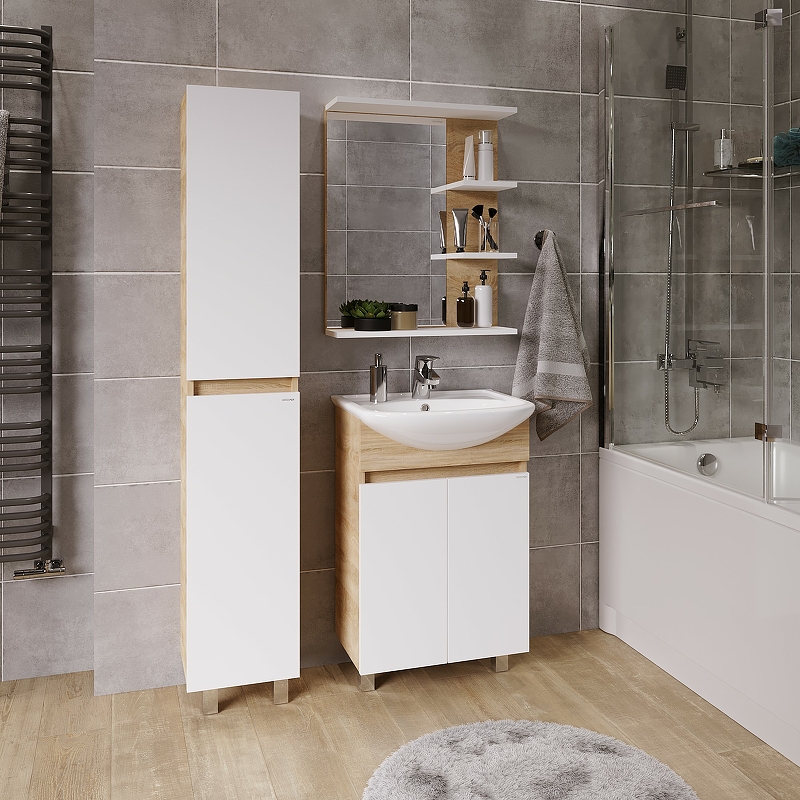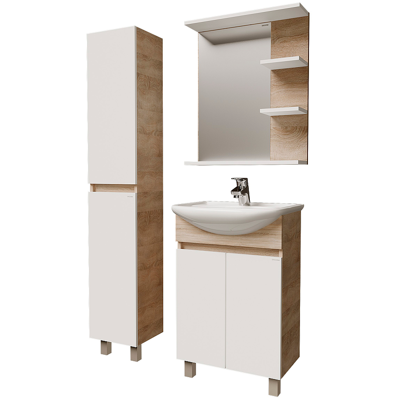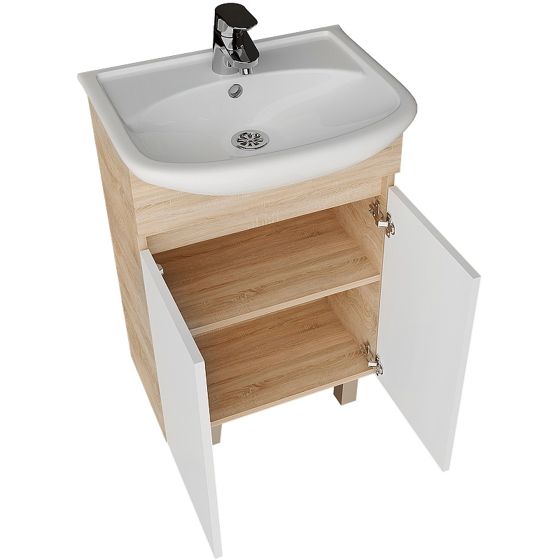 Закажите товар "Тумба под раковину Grossman Поло 55 105501 Дуб сонома светлый Белая глянцевая"