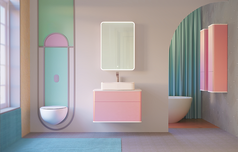 Закажите товар "Тумба под раковину Jorno Pastel 80 Pas.01.82/P/PI подвесная Розовый иней"