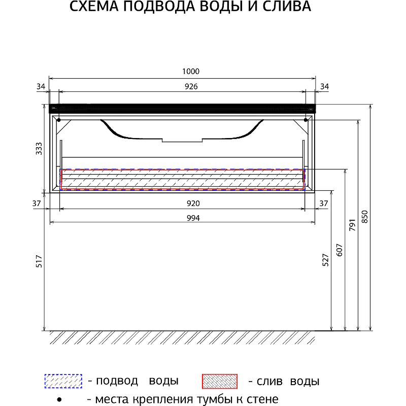 Закажите товар "Тумба под раковину Marka One Milacco 100П У72796 подвесная Black Stone"