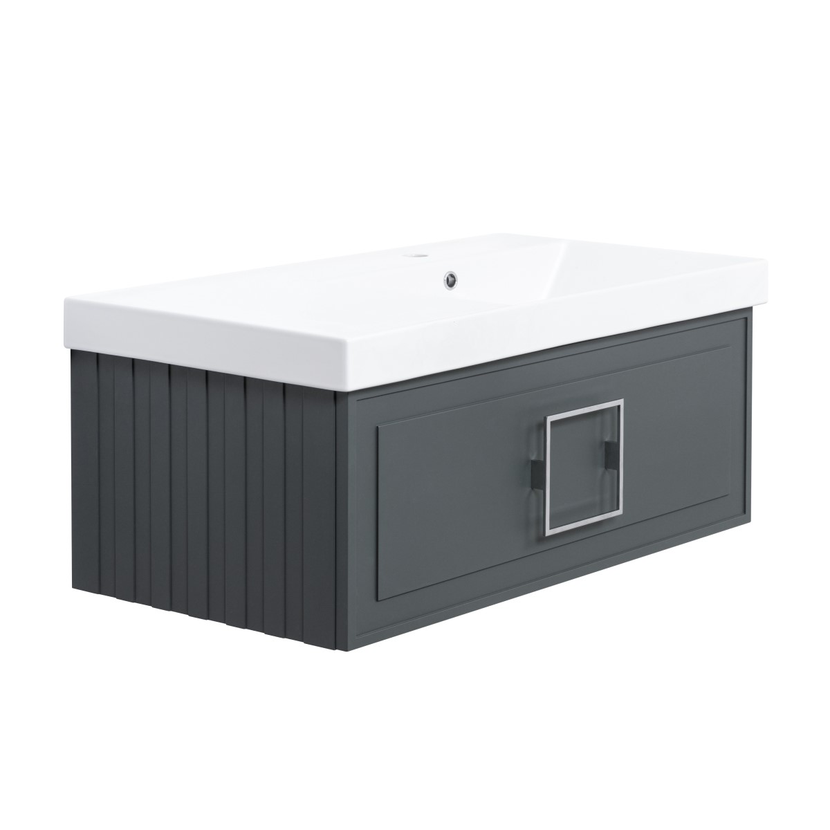 Тумба под раковину подвесная La Fenice Cubo FNC-01-CUB-G-90, серо-зеленая