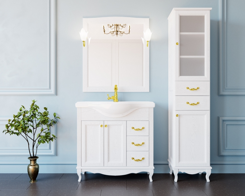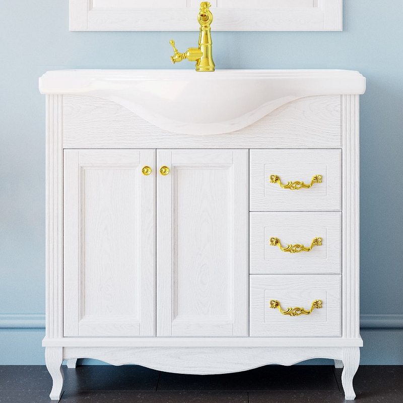 Закажите товар "Тумба под раковину ValenHouse Эллина 80 E80_ТБЗ Белая ручки Золото"