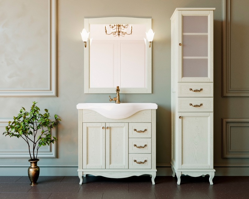 Закажите товар "Тумба под раковину ValenHouse Эллина 80 E80_ТСБ Слоновая кость ручки Бронза"
