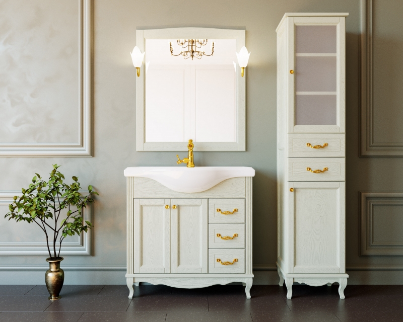 Закажите товар "Тумба под раковину ValenHouse Эллина 80 E80_ТСЗ Слоновая кость ручки Золото"