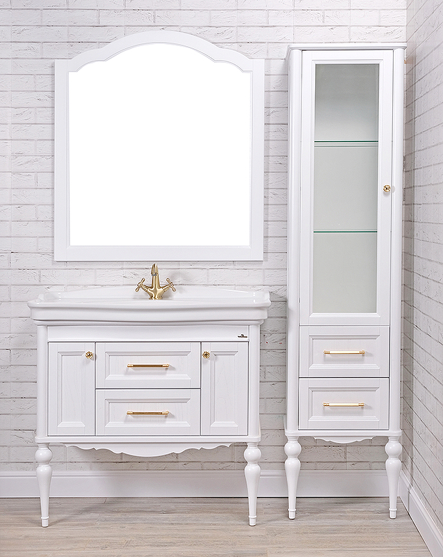 Закажите товар "Тумба под раковину ValenHouse Эстетика 100 ES100_ТБЗ Белая ручки Золото"