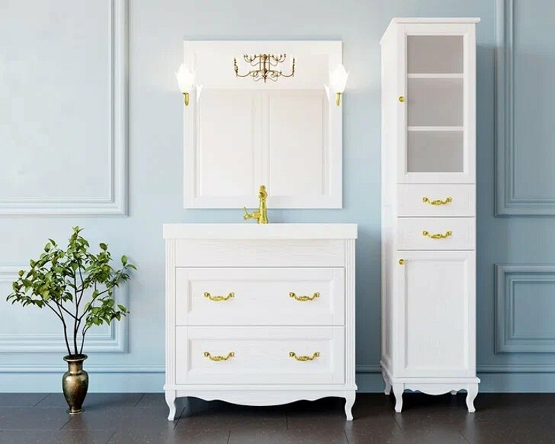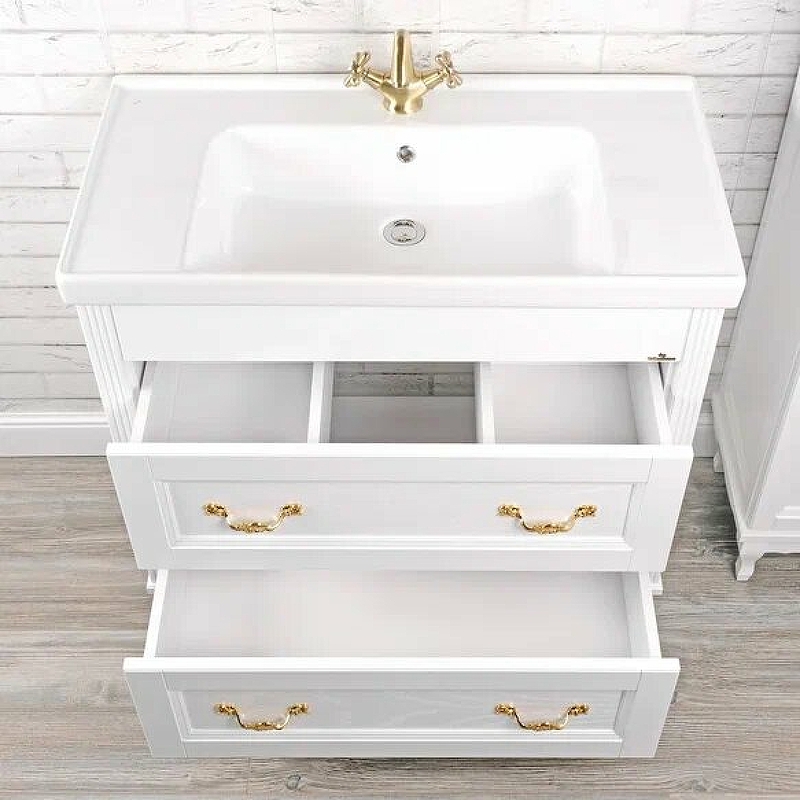 Закажите товар "Тумба под раковину ValenHouse Лиора 90 L90_ТБЗ Белая ручки Золото"