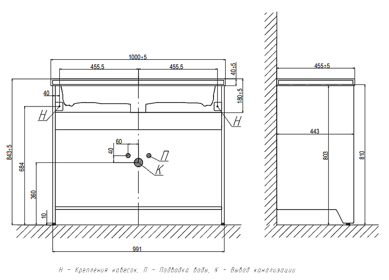 Закажите товар "Тумба под раковину Velvex Klaufs 100 tnKLA.100.2Y.NEW-617.216 Шатанэ Белая"