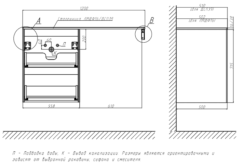 Закажите товар "Тумба под раковину Velvex Klaufs 56 tpKLA.56.50.2Y-616.216 подвесная Белая"