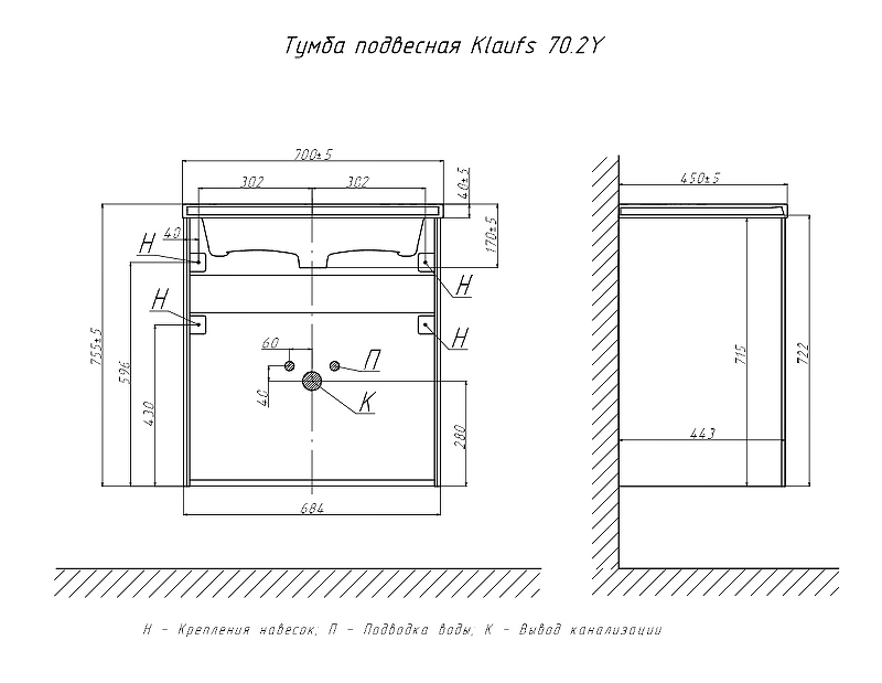 Закажите товар "Тумба под раковину Velvex Klaufs 70 tpKLA.70.2Y-617.217 подвесная Чёрная матовая шатанэ"