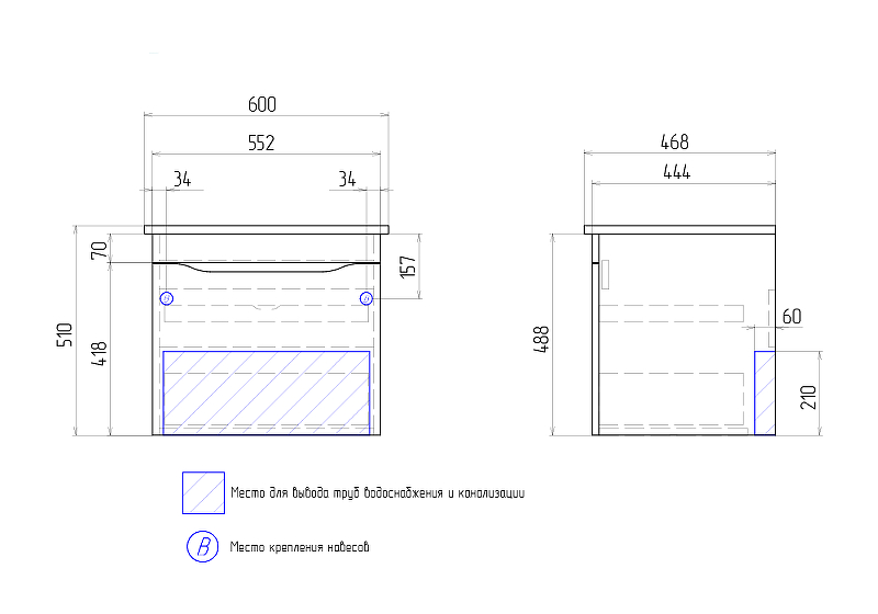 Закажите товар "Тумба под раковину Vigo Grani 60 tp.GRI.ELI.60.1Yдубсонома подвесная Дуб сонома"