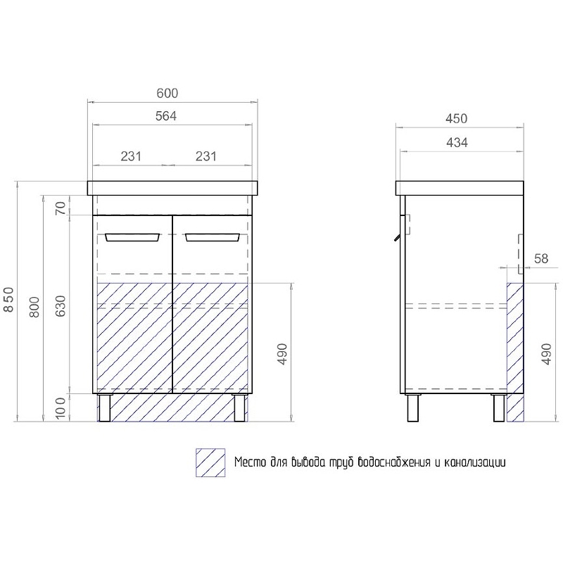 Закажите товар "Тумба под раковину Vigo Nova 60 tn.NOV.MIR.60.2D Белая"
