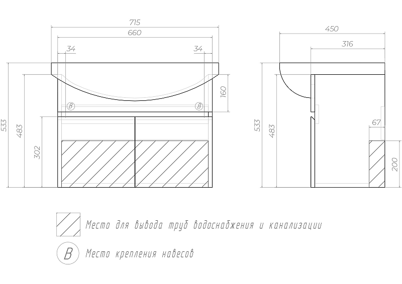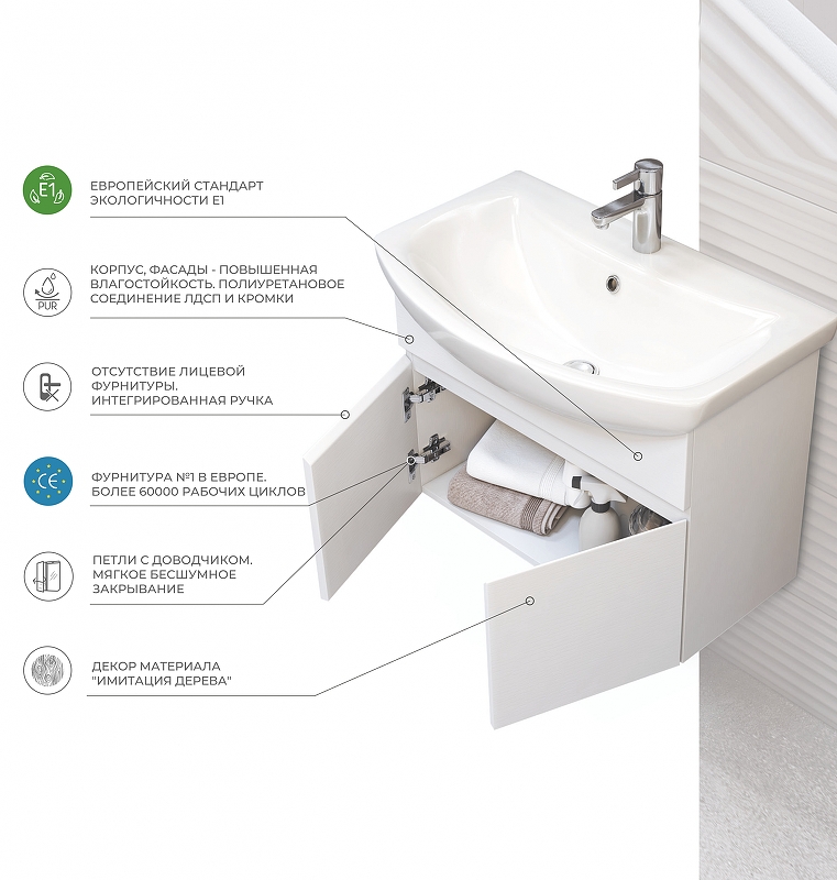 Закажите товар "Тумба под раковину Vigo Wing 70 tp.WIN.BAL.70.2Dбелый подвесная Белая"