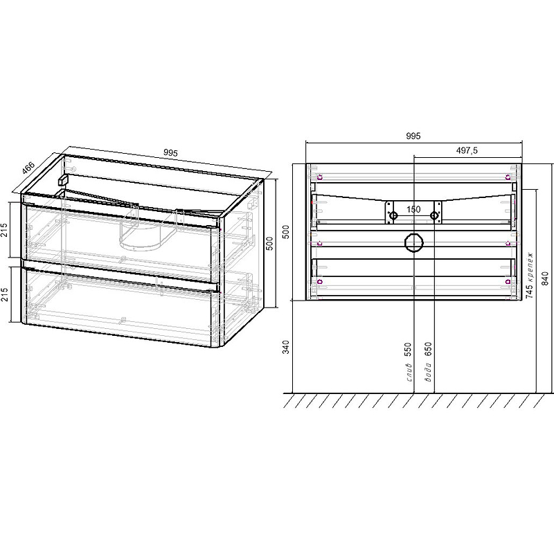 Закажите товар "Тумба под раковину Vincea Vico 100 VMC-2V100CN подвесная Carbone"