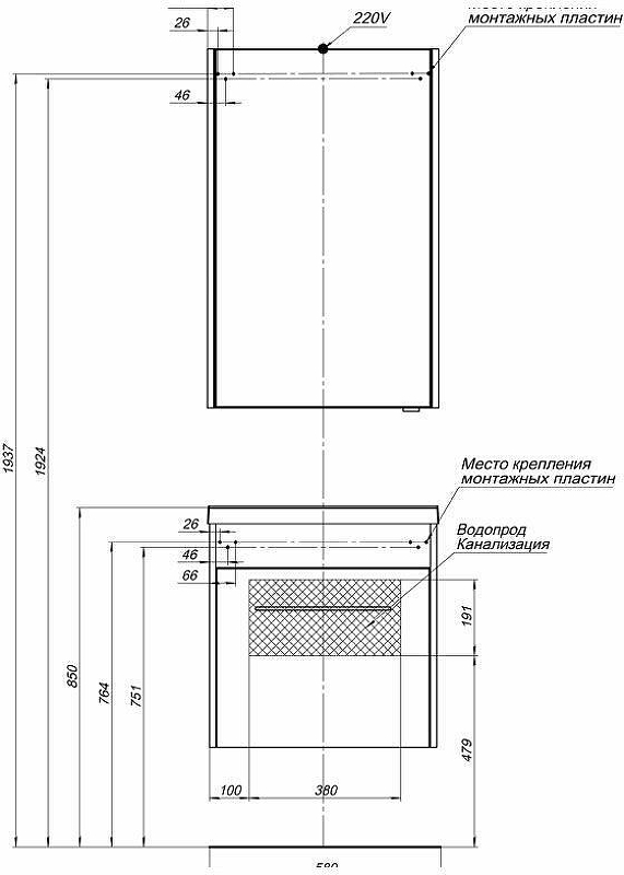Тумба с раковиной Aquanet Августа 58 287691 подвесная.