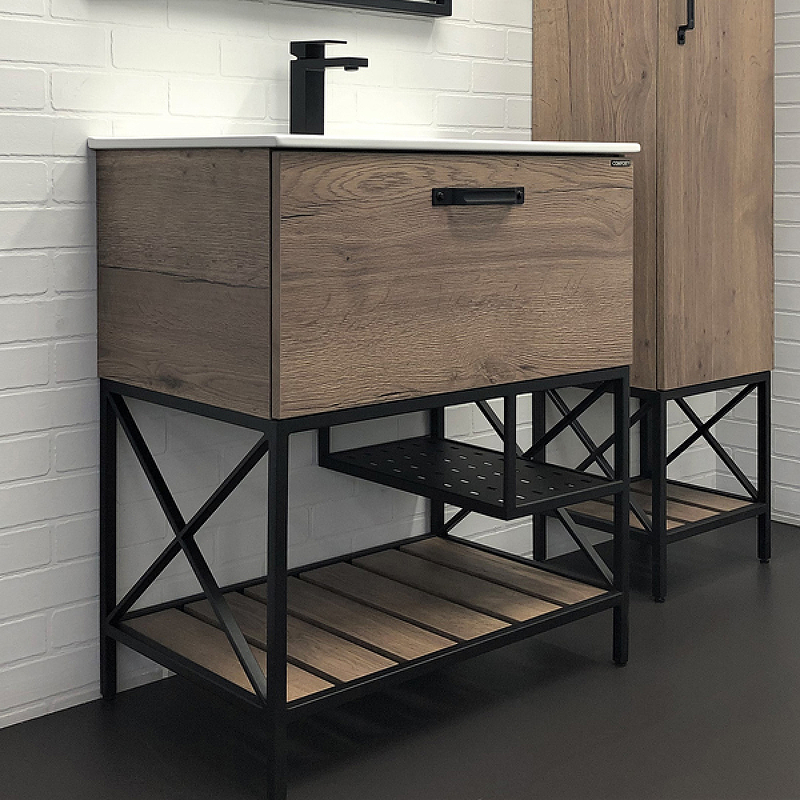Закажите товар "Тумба с раковиной Comforty Бредфорд 75 00-00008074 Дуб темный"