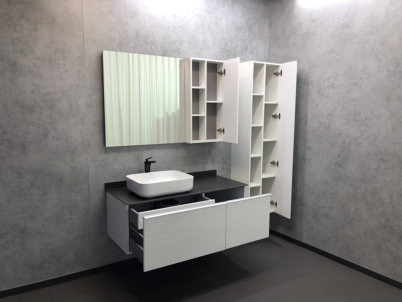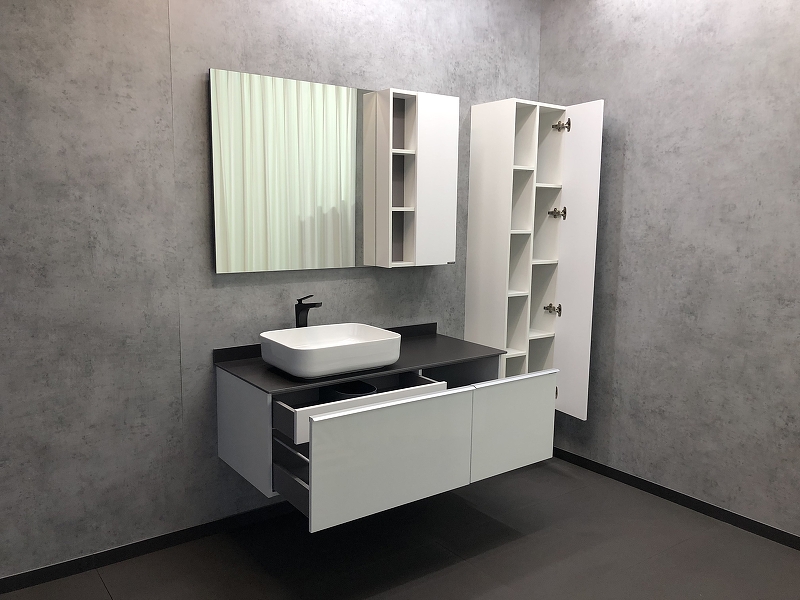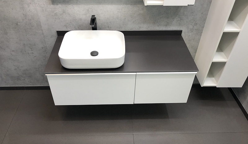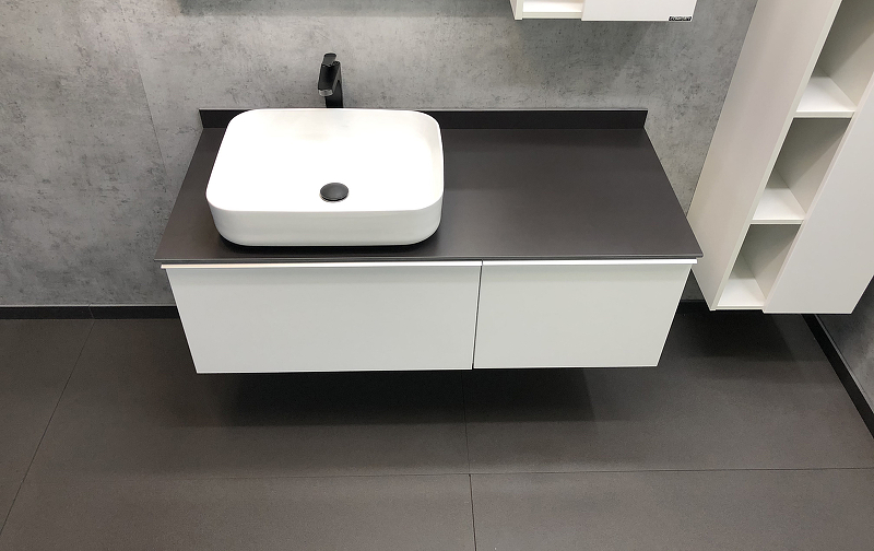 Закажите товар "Тумба с раковиной Comforty Милан 120 00-00004023 подвесная Белый глянец Антрацит"