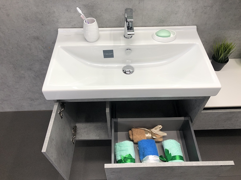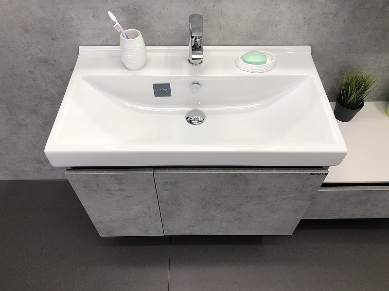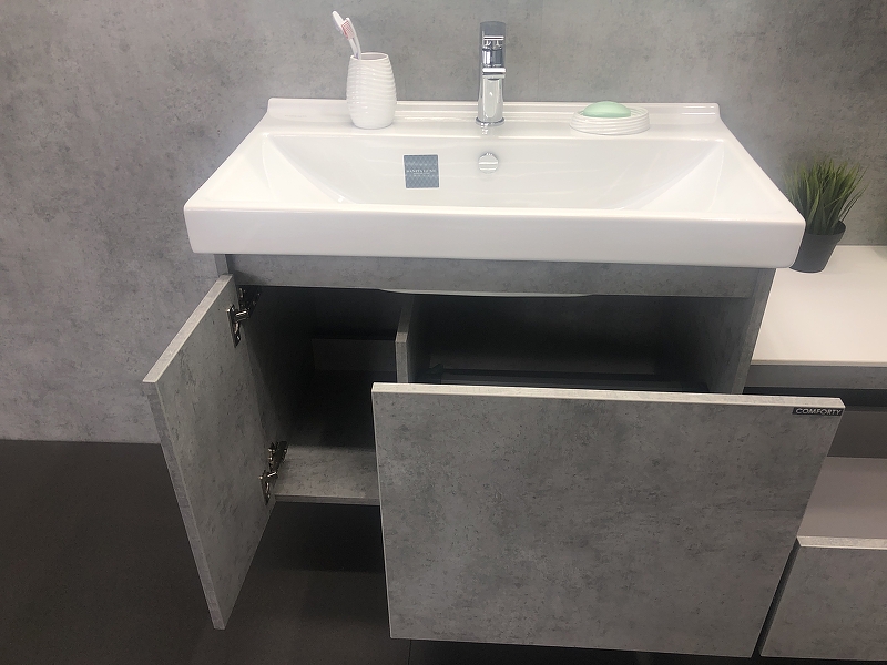 Закажите товар "Тумба с раковиной Comforty Осло 80 00-00000836 подвесная Бетон светлый"