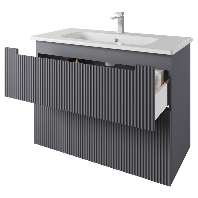 Закажите товар "Тумба с раковиной подвесная Dreja Euphoria 100 см, серый базальт"