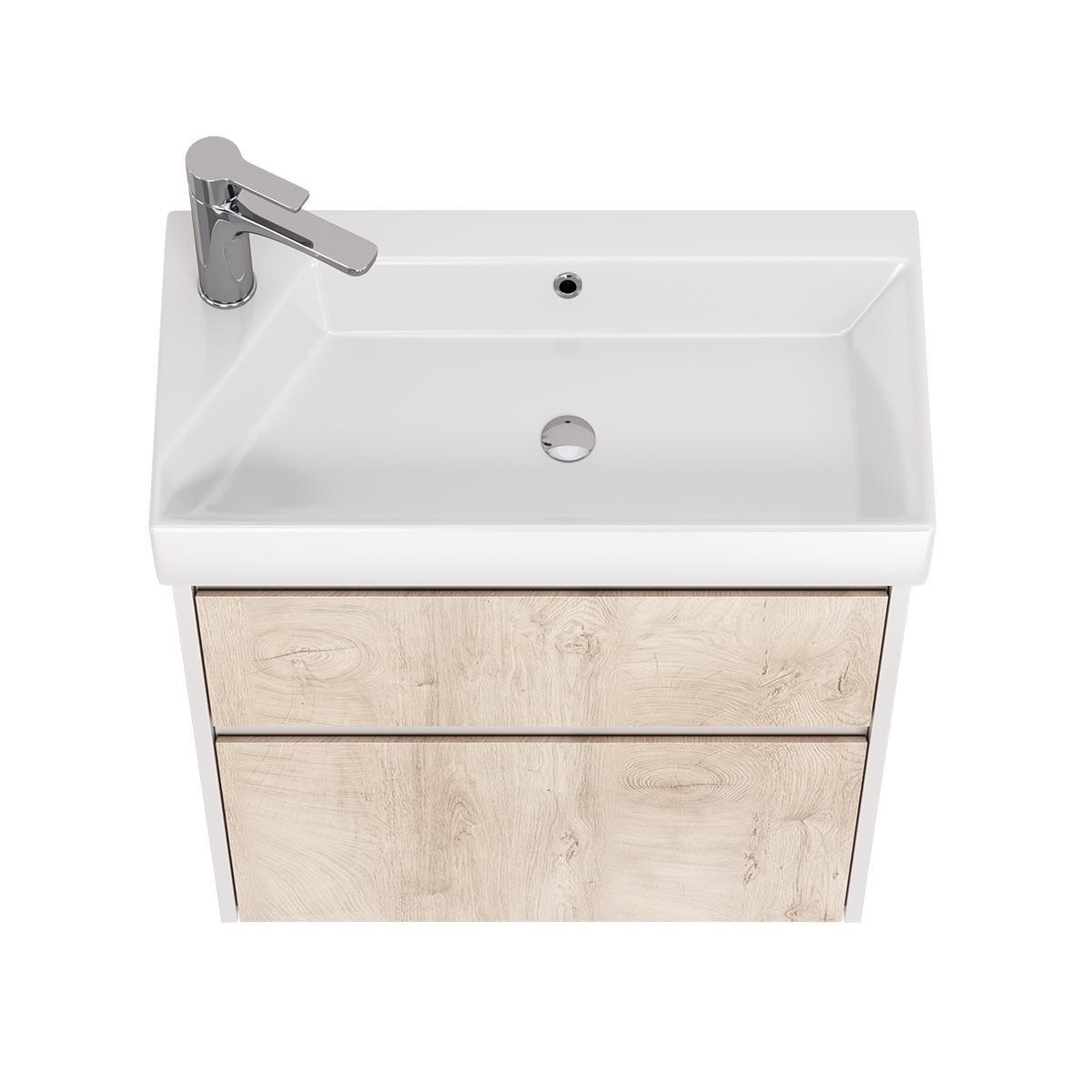 Закажите товар "Тумба с раковиной подвесная Dreja Slim 65 см, белый/дуб кантри"