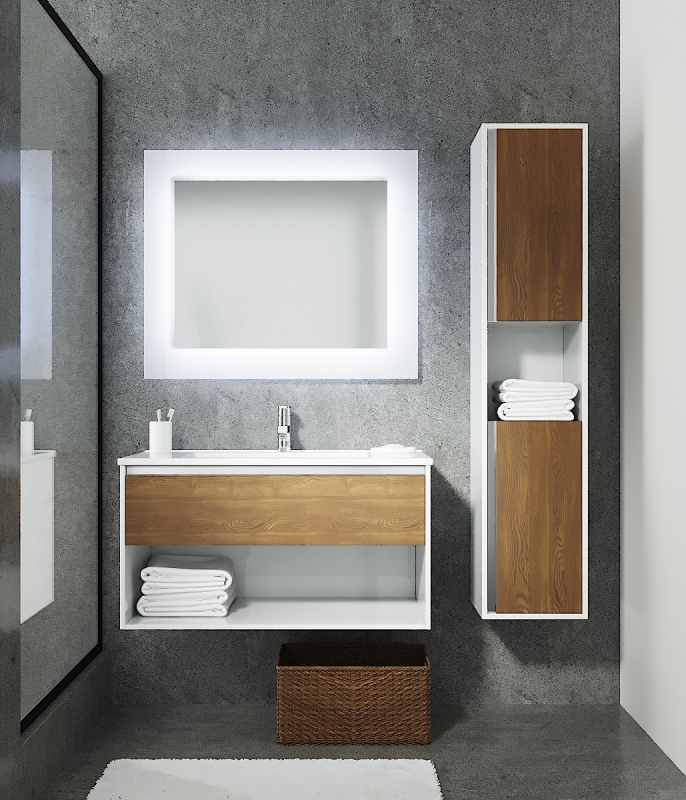 Закажите товар "Тумба с раковиной SanVit Контур 70 kkont070 с фактурой под дерево подвесная Лиственница"