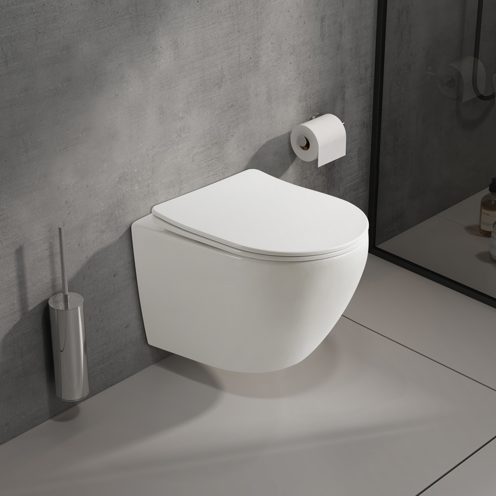 Унитаз подвесной NOVA, 204-NOV03. Размер: 490x360x355 мм. Безободковый. Цвет: белый. Сиденье дюропласт с функцией плавного закрывания Soft Close, легкосъемное. Система антивсплеск. Комплект крепления.