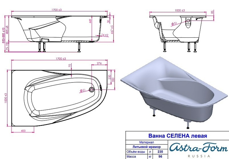 Ванна из искусственного камня Astra Form Селена 170х100 L 010132.