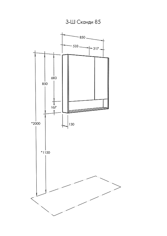 Зеркальный шкаф Акватон Сканди 90 1A252302SDZ90.