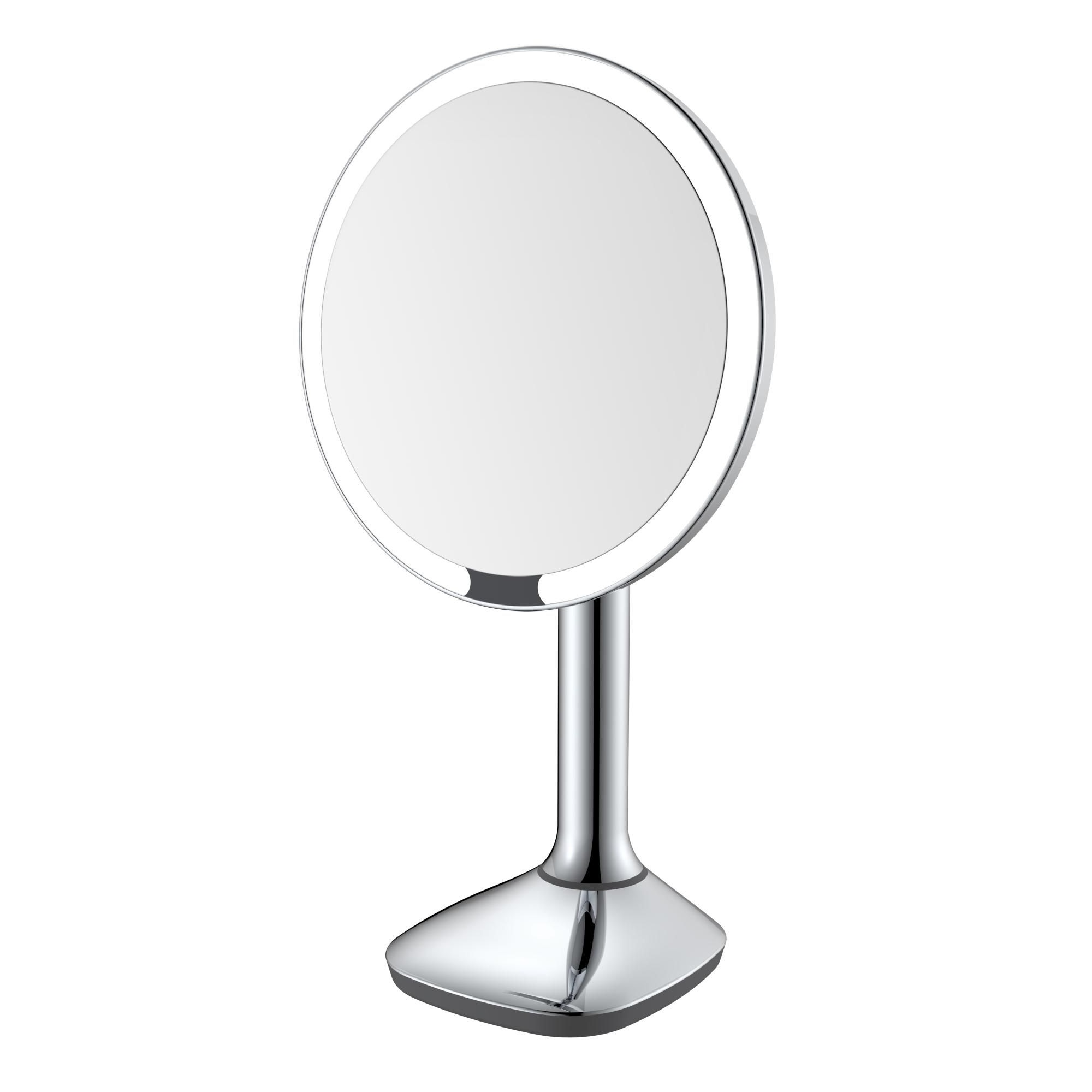 Зеркало настольное с увеличением 5х JAVA S-M8888, хром. Имеет светодиодную подсветку, сенсорное включение. Идеально для нанесения макияжа, надевания контактных линз, комфортного бритья. Кнопка включение/выключение. Зеркало с увеличением 5Х. Регулировка наклона и поворота.