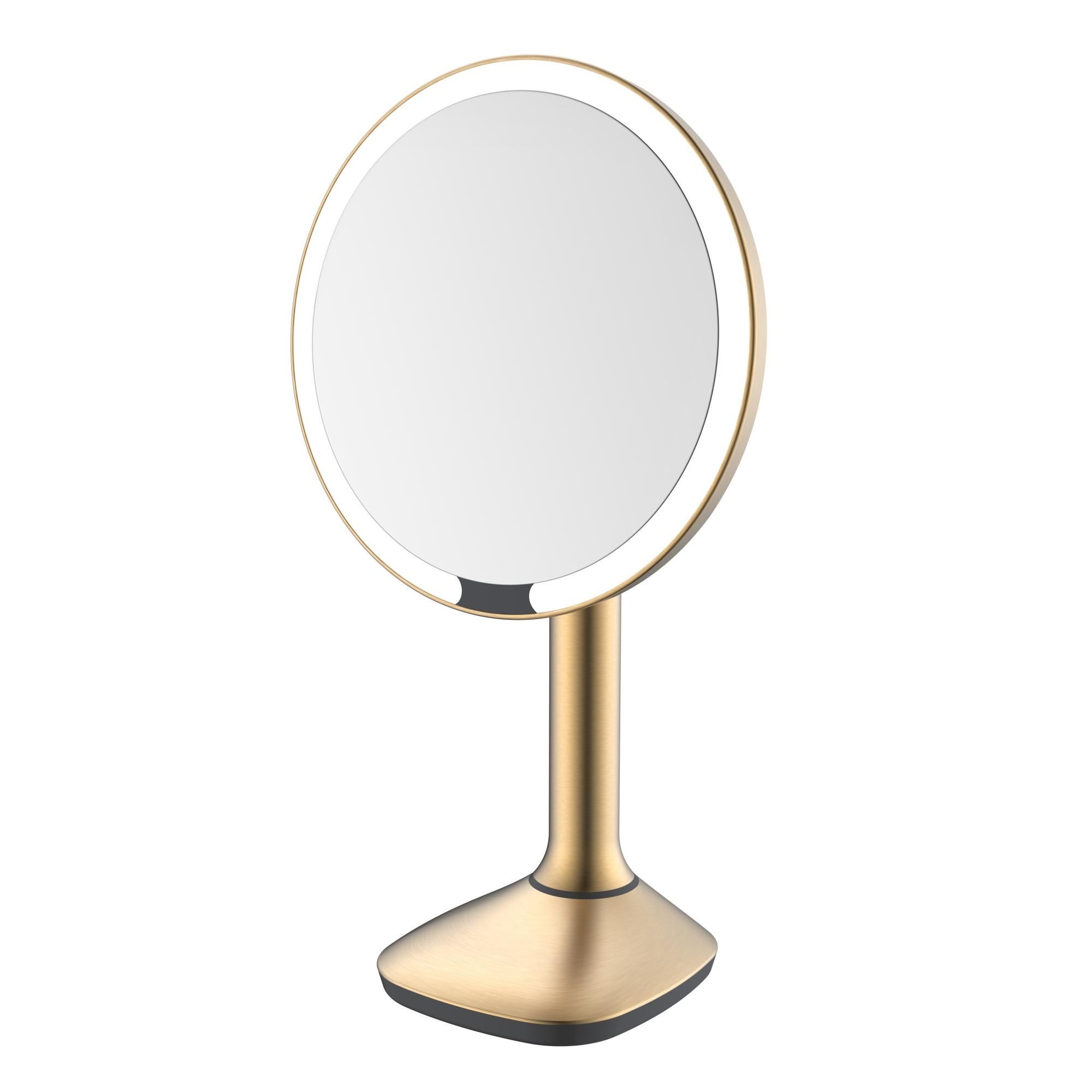 Зеркало настольное с увеличением 5х JAVA S-M8888LB, матовое золото. Имеет светодиодную подсветку, сенсорное включение. Идеально для нанесения макияжа, надевания контактных линз, комфортного бритья. Кнопка включение/выключение. Зеркало с увеличением 5Х. Регулировка наклона и поворота.
