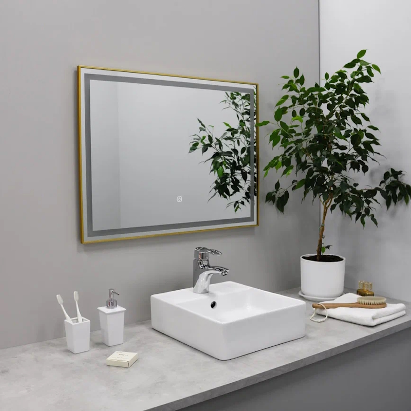 Закажите товар "Зеркало с подсветкой LED Fixsen FX-2100G прямоугольное 100х80 см, золотой сатин"