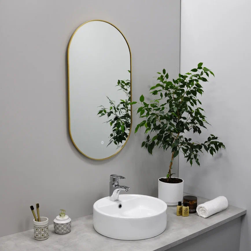 Закажите товар "Зеркало с подсветкой LED Fixsen FX-3100G овальное 50х100 см, золотой сатин"