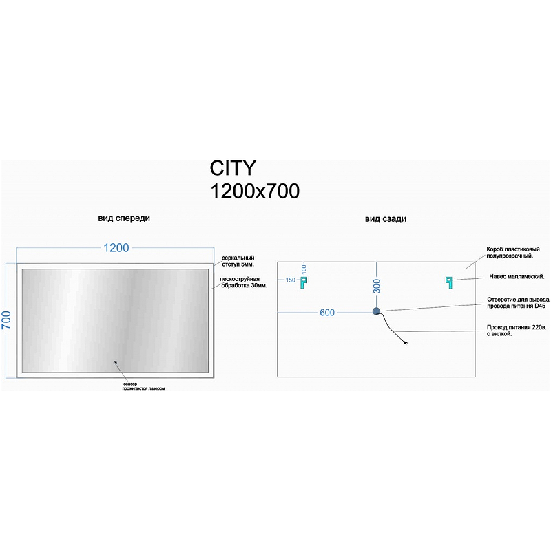 Закажите товар "Зеркало Sancos City 120 CI1200 с подсветкой с сенсорным выключателем"