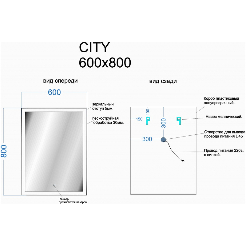 Зеркало Sancos City 60 CI600 с подсветкой с сенсорным выключателем