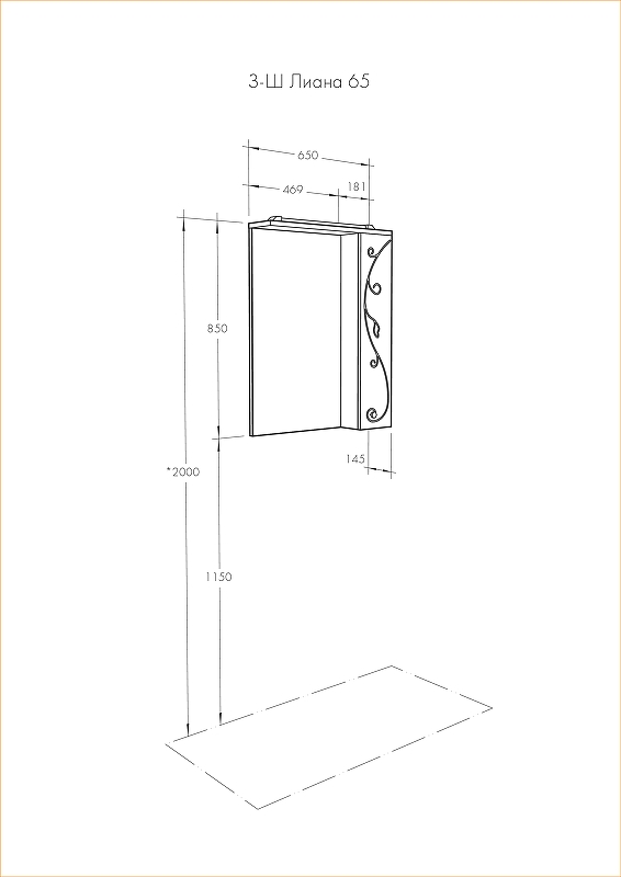 Зеркало со шкафом Акватон Лиана 65 1A166202LL01R с подсветкой.