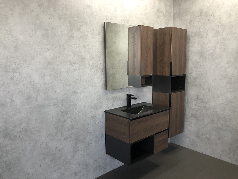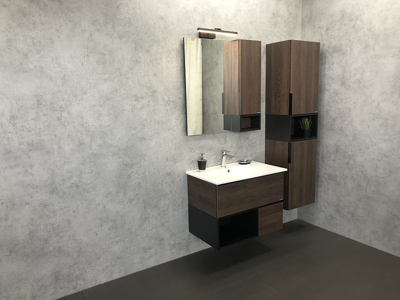 Закажите товар "Зеркало со шкафом Comforty Франкфурт 75 00004151044 Дуб шоколадно-коричневый Черное матовое"