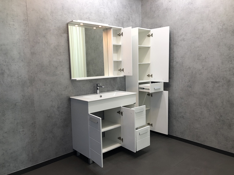 Закажите товар "Зеркало со шкафом Comforty Модена М-90 00-00001641 с подсветкой Белое матовое"