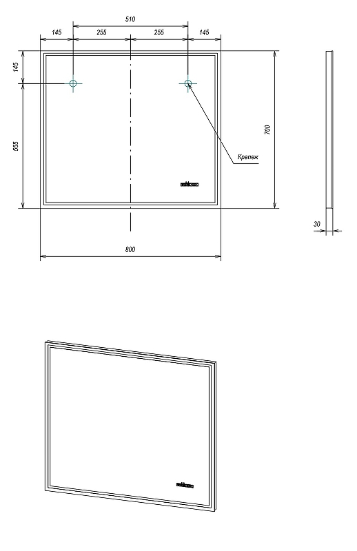Закажите товар "Зеркало Velvex Klaufs Media 80 zkKLA.me.80.al с подсветкой с подогревом и сенсорным выключателем"